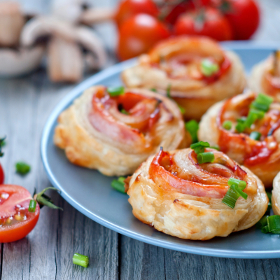 Nakrájejte si houby, přidejte je spolu s čerstvými lístky tymiánu do pánve k česneku a cibuli a chvíli vše restujte. Když houby trochu změknou, dejte do pánve ještě několik pokrájených cherry rajčátek a promíchejte.